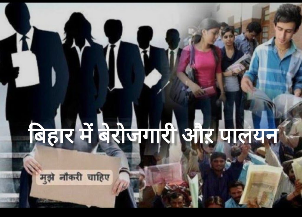 बिहार की बेरोजगारी दर राष्ट्रीय औसत से काफी ऊपर है। ग्रामीण इलाकों में कृषि पर निर्भर जीवन तेजी से सिकुड़ रहा है, और शहरी क्षेत्रों में नौकरी के अवसर सीमित हैं। राज्य में पर्याप्त उद्योग न होने की वजह से शिक्षित और अकुशल—दोनों वर्गों के युवा रोजगार के लिए घर छोड़ने को मजबूर हैं।