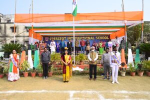 कार्यक्रम की शुरुआत विद्यालय के चेयरमैन डॉ. शमीम अहमद द्वारा ध्वजारोहण के साथ हुई। तिरंगे को सलामी देने के बाद सभा को संबोधित करते हुए डॉ. अहमद ने विद्यालय की विकास यात्रा पर प्रकाश डाला। उन्होंने गर्व के साथ साझा किया कि पिछले 10 वर्षों में क्रिसेंट इंटरनेशनल स्कूल ने शिक्षा के क्षेत्र में नए कीर्तिमान स्थापित किए हैं। उन्होंने कहा, “आज हमारा विद्यालय राज्य और राष्ट्रीय स्तर पर प्रतिष्ठित संस्थानों को कड़ी टक्कर दे रहा है और निरंतर पुरस्कार अर्जित कर रहा है।”