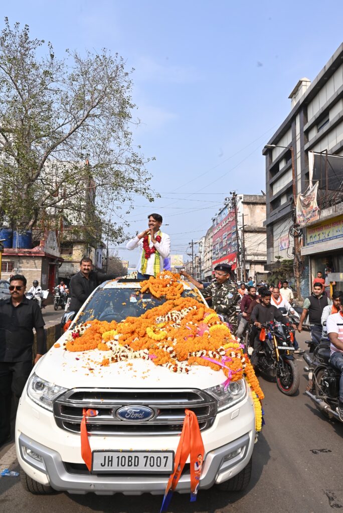 सुबह से ही सिंह मेंशन के बाहर समर्थकों का जुटना शुरू हो गया था। जैसे ही संजीव सिंह का काफिला आगे बढ़ा, हजारों की संख्या में मोटरसाइकिलें और सैकड़ों चार पहिया वाहन इस कारवां का हिस्सा बनते गए। आलम यह था कि स्टील गेट से लेकर झरिया तक की मुख्य सड़कें पूरी तरह से ‘केसरिया’ रंग में रंगी नजर आईं। वाहनों की इतनी लंबी कतार थी कि शहर के मुख्य मार्गों पर यातायात घंटों तक पूरी तरह बाधित रहा, लेकिन समर्थकों के उत्साह में कोई कमी नहीं दिखी।