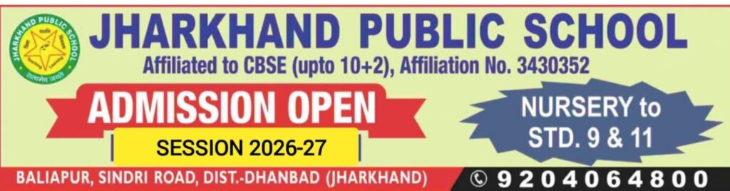 बलियापुर (झारखंड): झारखंड पब्लिक स्कूल, बलियापुर ने एक बार फिर शिक्षा के क्षेत्र में अपनी उत्कृष्टता और शैक्षणिक श्रेष्ठता का परिचय दिया है। केंद्रीय माध्यमिक शिक्षा बोर्ड (CBSE) की कक्षा 10वीं बोर्ड परीक्षा 2026 के परिणामों में विद्यालय के छात्रों ने अभूतपूर्व सफलता हासिल की है। विद्यालय प्रबंधन, प्राचार्य और शिक्षकों के कुशल मार्गदर्शन तथा छात्रों की अथक मेहनत के फलस्वरूप संस्थान ने इस वर्ष भी अपना परचम लहराया है।